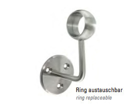 Hochwertige Handlaufhalter in V2A-Edelstahl. Das Rondenmaß beträgt 70 x 6 mm in flacher Ausführung. Die Ronden haben jeweils 3 x 6,5 mm gesenkte Bohrungen. Der Bügel hat einen Durchmesser von 12/14 mm und ist mit der Ronde verschraubt. Nach oben ist der Bügel mit einem Kugelring für Rohre ausgestattet. Der Wandabstand bis Mitte-Bügel beträgt 81 mm.