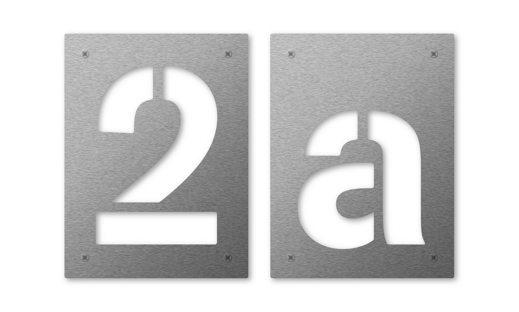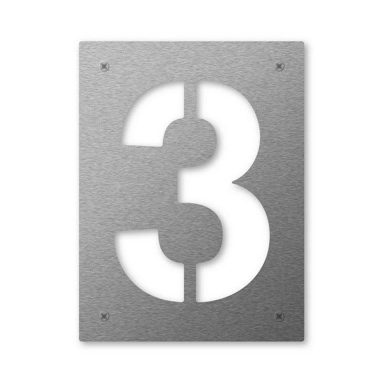 Die markanten Hausnummern werden von vorne mit sichtbaren Edelstahlschrauben an der Wand befestigt.