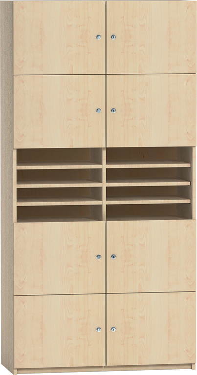 Der Schließfachschrank variado 4 mit acht Schließfächern und acht offenen Postfächern lässt sich einzeln aufstellen und mit weiteren Schränken und Regalen aus dem Schranksystem variado kombinieren. Auch das Erstellen einer Schrankwand lässt sich individuell realisieren.