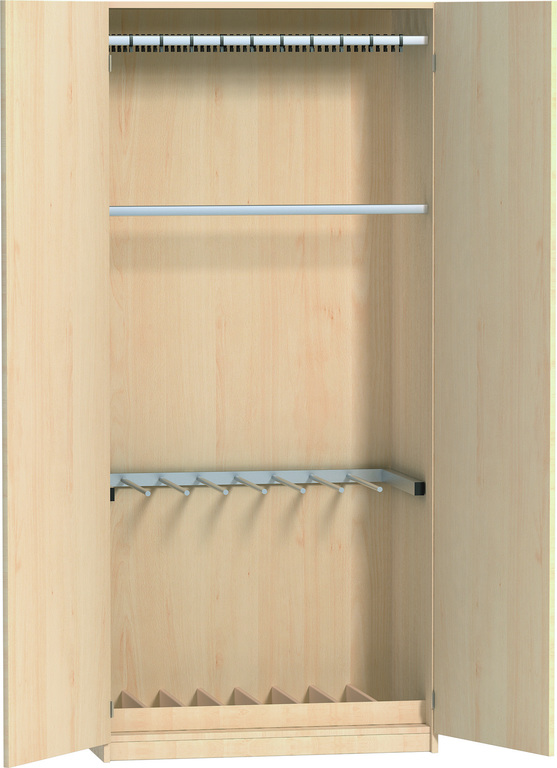 - Innenausstattung: 5 herausnehmbare Garderobenstangen mit jeweils 10 Kartenhaken - 8-fach Unterteilung durch Stahlstangen - sicherer Stand durch 8-fach Einteilung am Boden