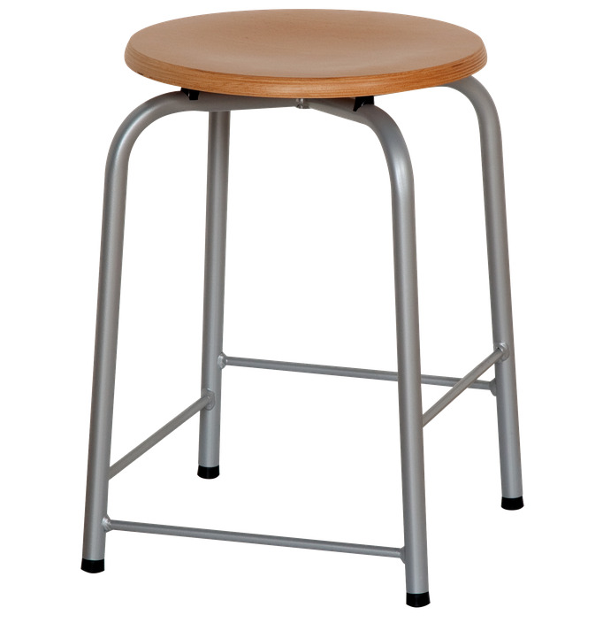 Die Sitzfläche besteht aus Mehrschicht-Buchensperrholz mit Melaminharzbeschichtung. Der Dekor ist Buche natur.