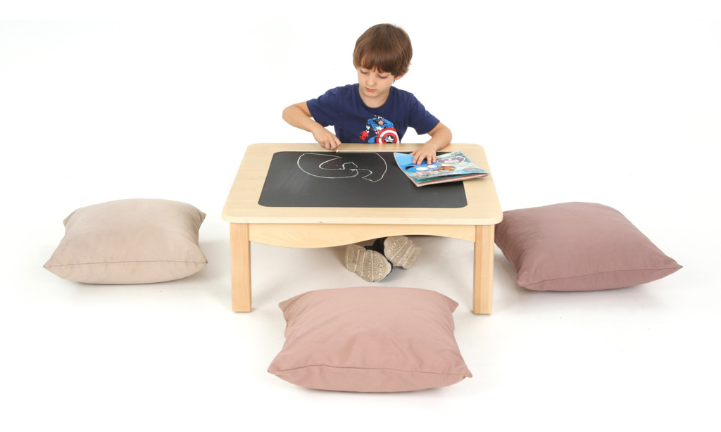 Dieser praktische Bodentisch aus der Möbelserie OWLAF ist mit einer großen Kreidetafel in der Tischmitte ausgestattet. Die stabile und langlebige Konstruktion mit abgerundeten Ecken und geschwungener Zarge und die Auswahl pflegeleichter, nachhaltiger Materialien garantieren dass die Kinder lange Freude an dem Tisch haben.