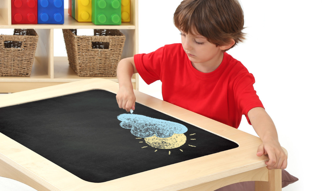 Ein Tisch mit vielen Verwendungsmöglichkeiten, der die Kreativität der Kinder fördert