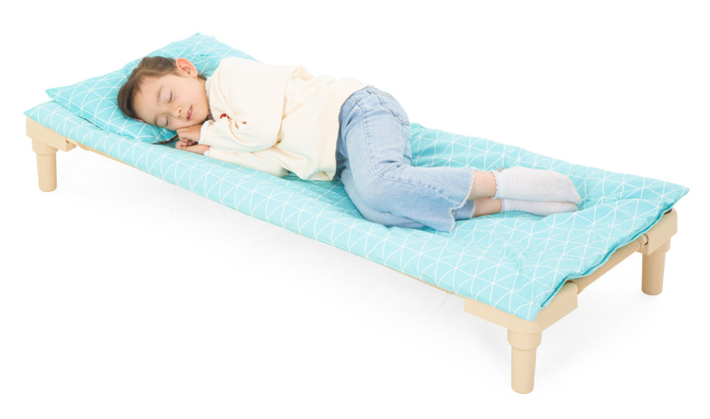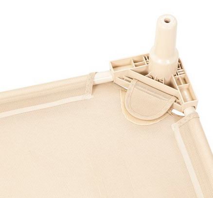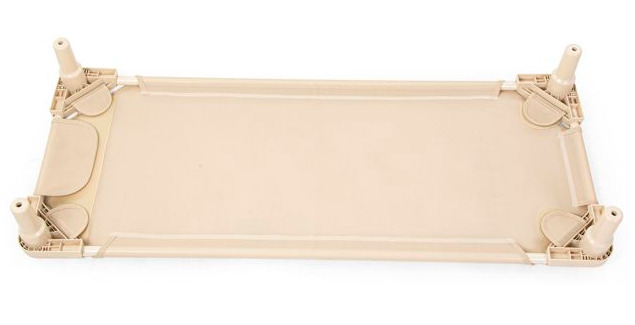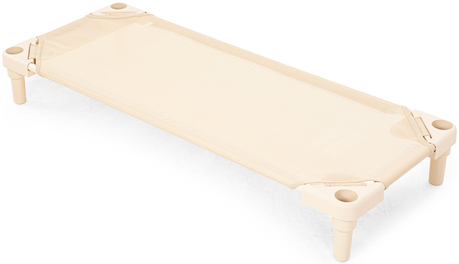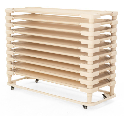 Die Stapelliegen sind sehr stabil und trotzdem so leicht, dass sie einfach aufgestellt und wieder verstaut werden können. Der Stahlrahmen verzieht sich nicht und die abgerundeten Plastikecken sind unten mit Beinen und oben mit einem Loch austestattet, sodass sich die Liegen platzsparend aufeinander stapeln lassen. Die ideale Ergänzung dafür ist der Transportwagen für Stapelliegen, der mit bis zu 10 Liegen beladen werden kann. Die Liegefläche besteht aus einem robusten und atmungsaktiven Netzgewebe, das mit einem praktischen Klettverschluss an der Unterseite der Liege befestigt ist, wodurch es bei Bedarf ganz einfach nachgespannt werden kann.
