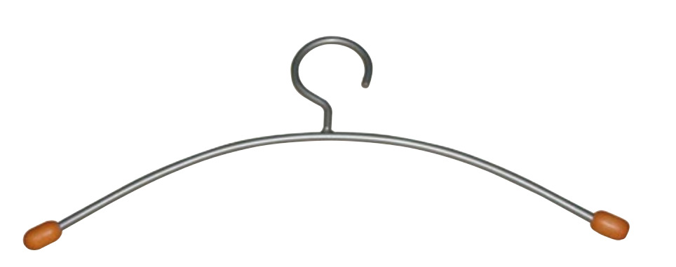 Kleiderbügel aus Metall pulverbeschichtet, silberfarben, Ausführung mit Holzenden, Lieferung im 2-er Set.