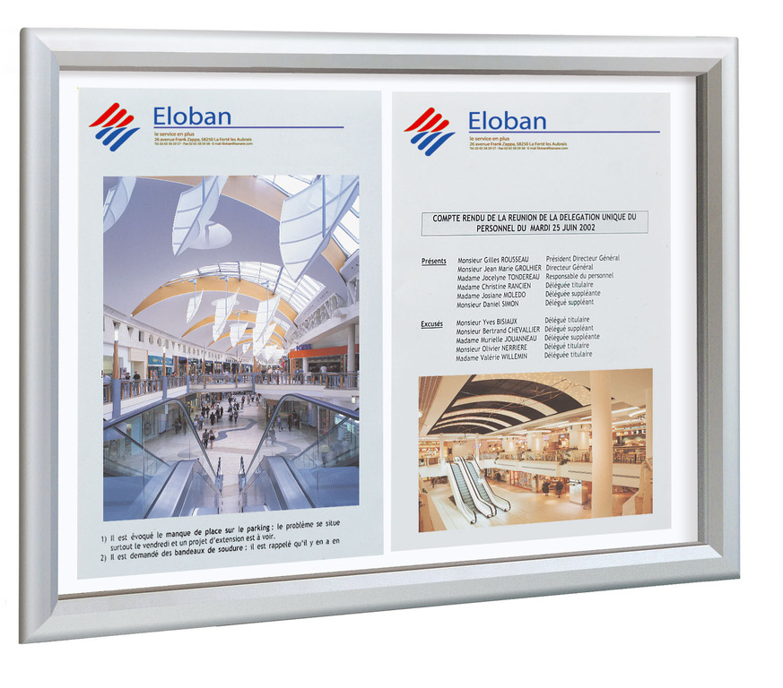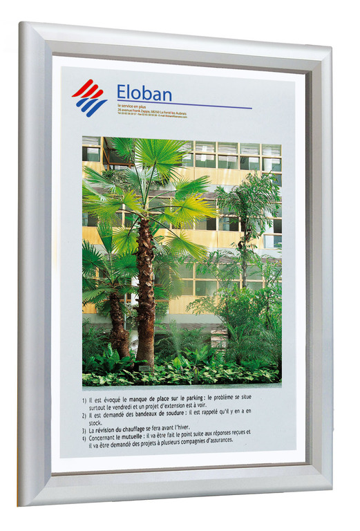 Der Klemmrahmen Eco Clic ist eine einfache und kostengünstige Lösung für die Bekanntgabe von nicht vertraulichen Mitteilungen, Werbung sowie Sicherheits- und anderen Hinweisen im Innenbereich.