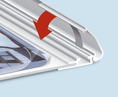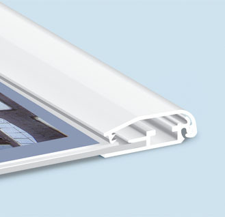 Die Rahmen sind aus Aluminium gefertigt, 25 mm breit und 12 mm stark. Dokumente werden durch einfaches Heben und Senken an allen 4 Seiten gehalten. Die Ecken sind verchromt und können abgerundet oder eckig sein. Die Ausführung ist entweder silber eloxiert oder schwarz beschichtet . Ein Schutzfilm aus biegbarem Kunststoff ist vorhanden.