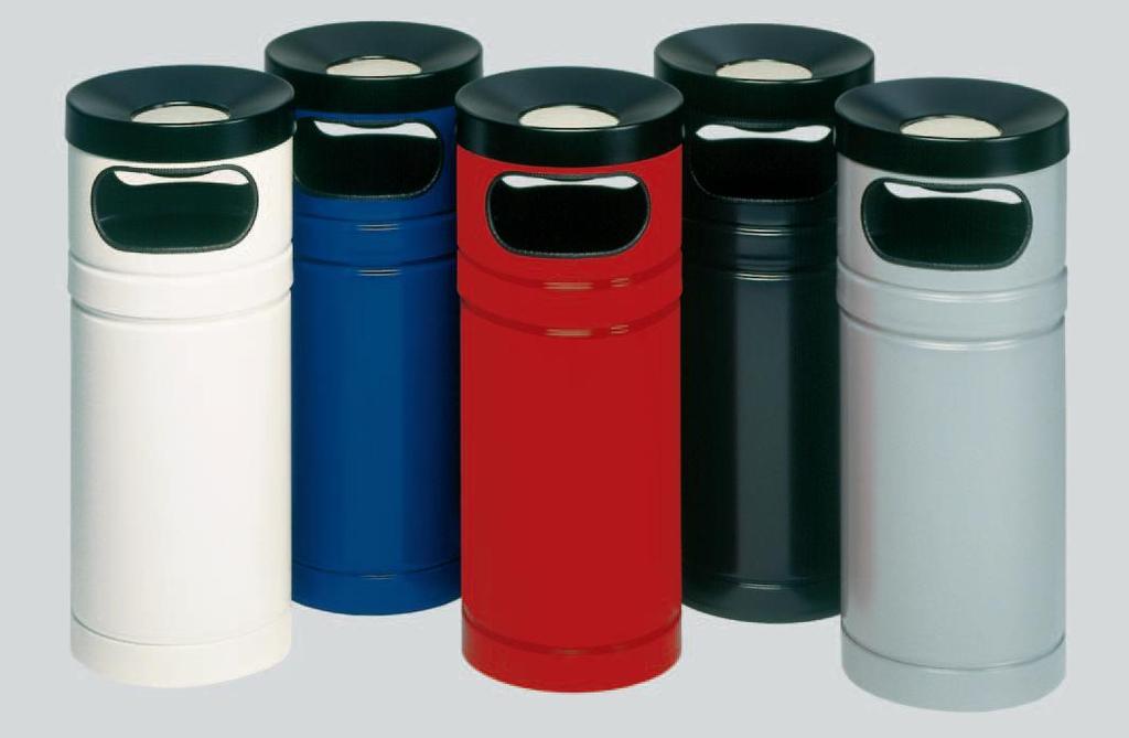 Der Abfallsammler / Ascher H90 wird aus verz. Stahlblech gefertigt. Oberflächenschutz = hochwertige Pulverbeschichtung. Ausgerüstet mit einem schwarz beschichteten Aluminium-Kopfteil. Das Kopfteil wird als Aschereinsatz mit Sand gefüllt. Im abnehmbaren Mittelteil befinden sich zwei Einwurföffnungen für Abfall. Der Gerätekorpus dient als Abfallsammler und kann, aus hygienischen Gründen, mit einem Kunststoffsack versehen werden. Lieferbar ist der H90 in 5 verschiedenen Farben.