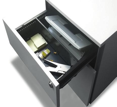 - Serienmäßig mit horizontalem Kabelkanal unter der Tischplatte.