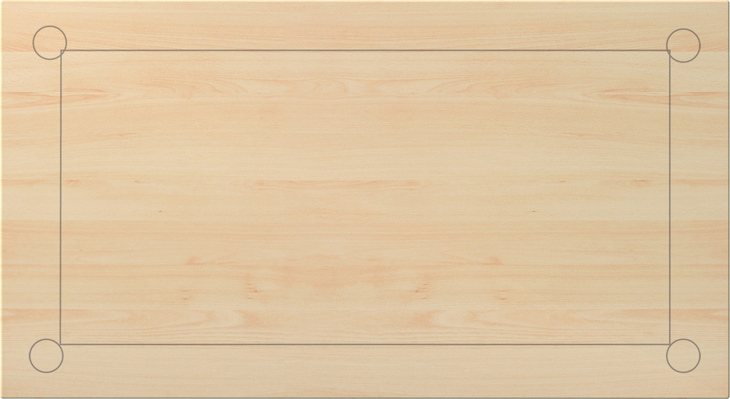 Beidseitig melaminharzbeschichtete Plattenoberflächen mit Plattenträgern aus Dreischicht-Qualitäts-Spanplatte E1 nach DIN EN 14322 und zusätzlichem Overlay. Die ABS-Kunststoffkanten werden fest und homogen mit dem Plattenkern verleimt sowie allseitig gerundet. Oberflächenstruktur VV (Büttenstruktur), seidenmatt.