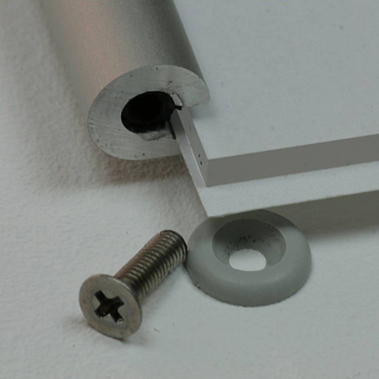 Die blendfreie Acrylabdeckung wird von oben in das Profil eingeschoben und mit grauen Abdeckkappen aus Kunststoff gesichtert.