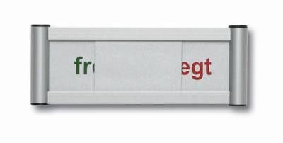 Funktionsschild G mit flachem Mittelteil aus silber eloxiertem Aluminium, mit Aufdruck "frei - belegt"