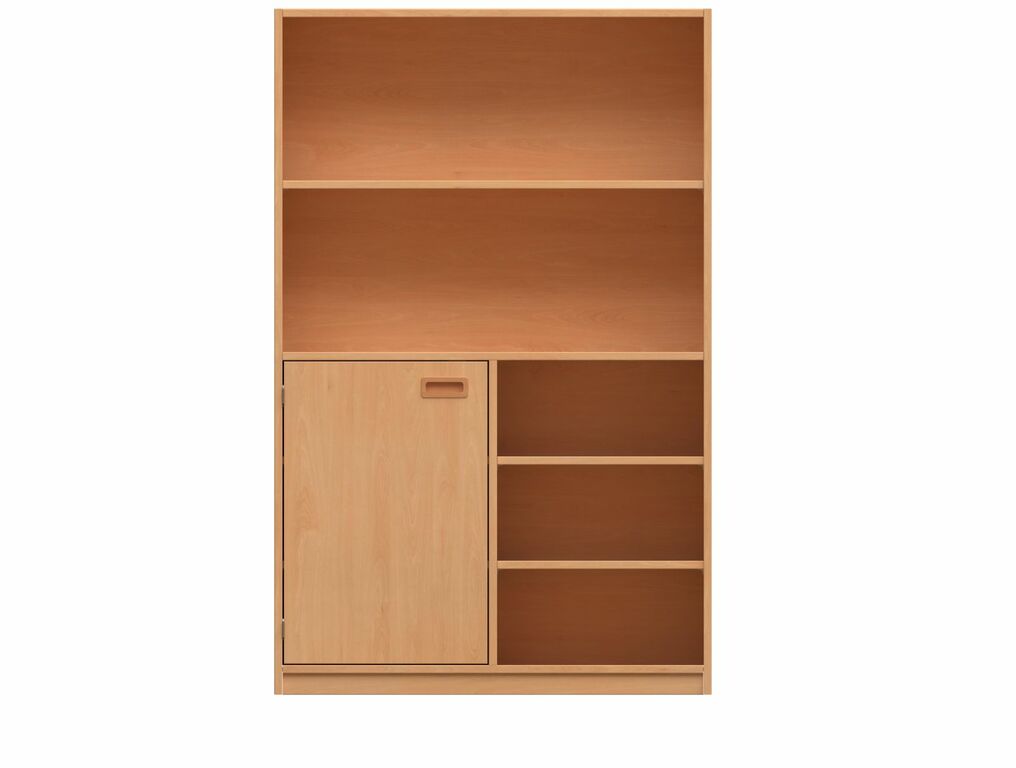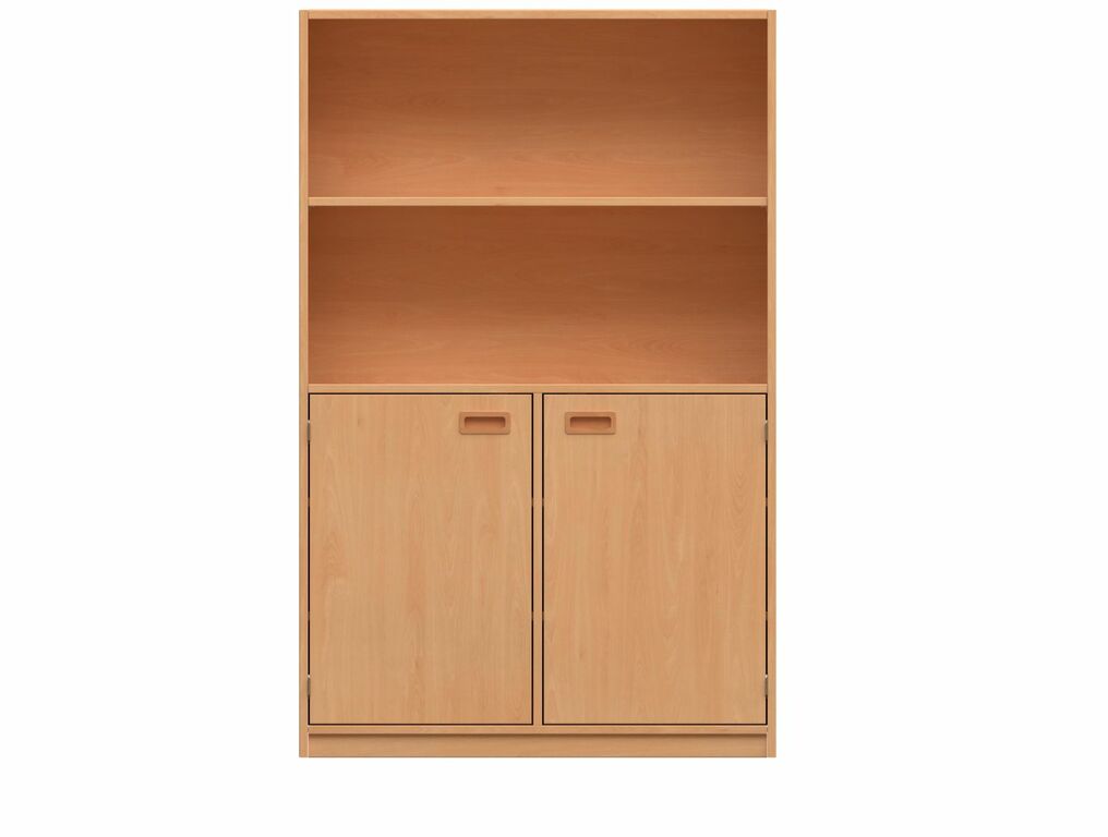 - Oben: Offen, 1 Fachboden. Unten: Mit 2 Türen, Muschelgriff, 1 Fachboden