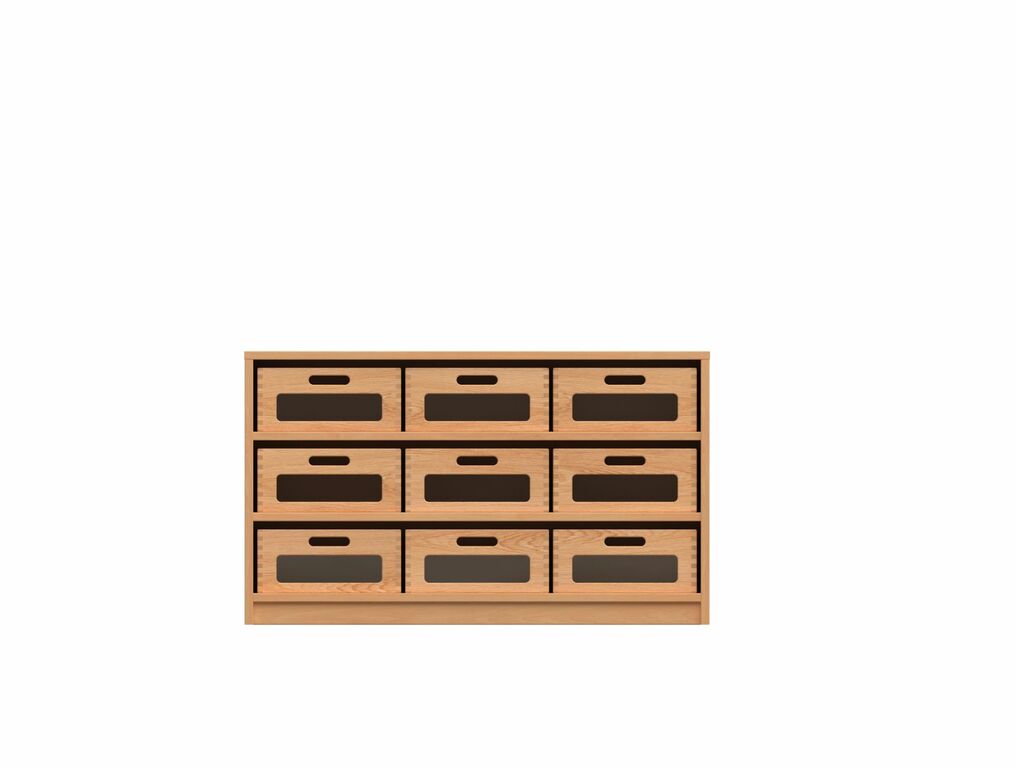 - Offen, 2 Fachböden, 3 x 3 Materialkästen mit Acrylglas