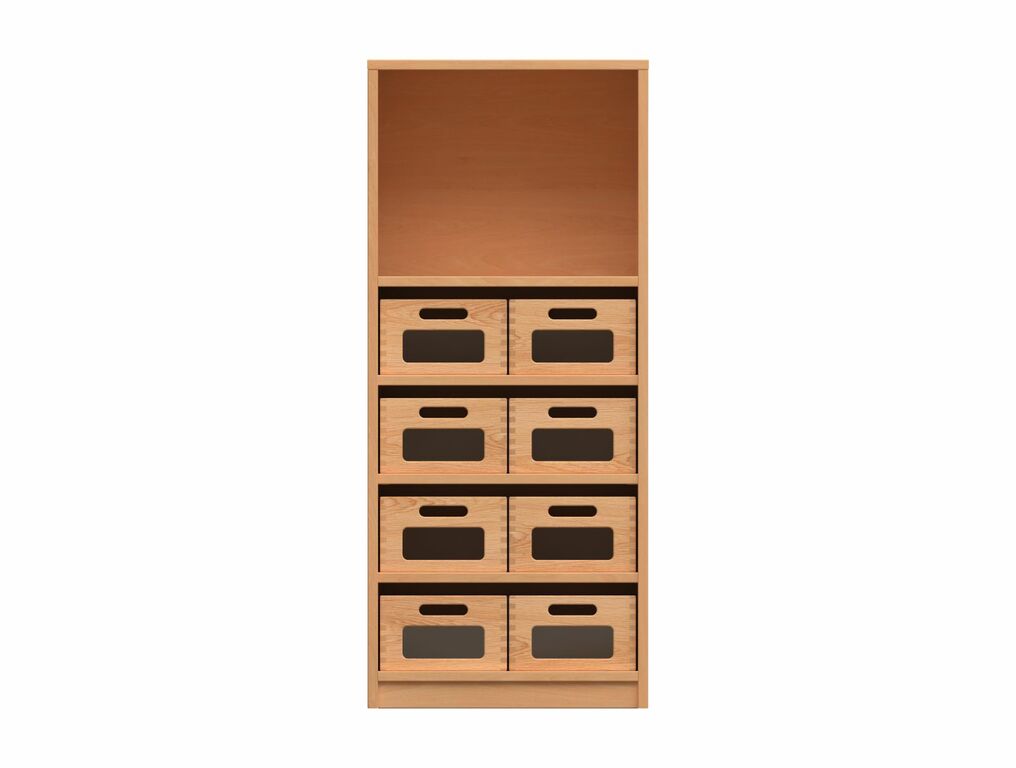 - Offen, 3 Fachböden, 4 x 2 Materialkästen