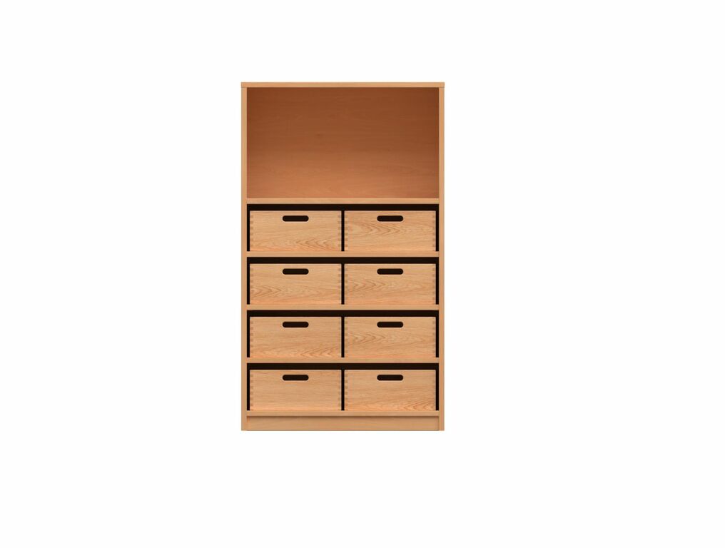 - Oben:Offen,Unten: 3 Einlegeböden, 4 x 2 Materialkästen