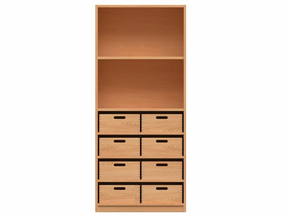- Oben: Offen, 1 Fachboden, Unten: Offen, 3 Fachböden 2 x 4 Materialkästen