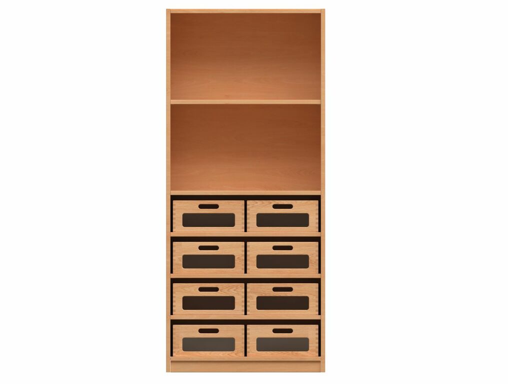 Oben: Offen, 1 Fachboden, Unten: Offen, 3 Fachböden 2 x 4 Materialkästen mit Acrylglas