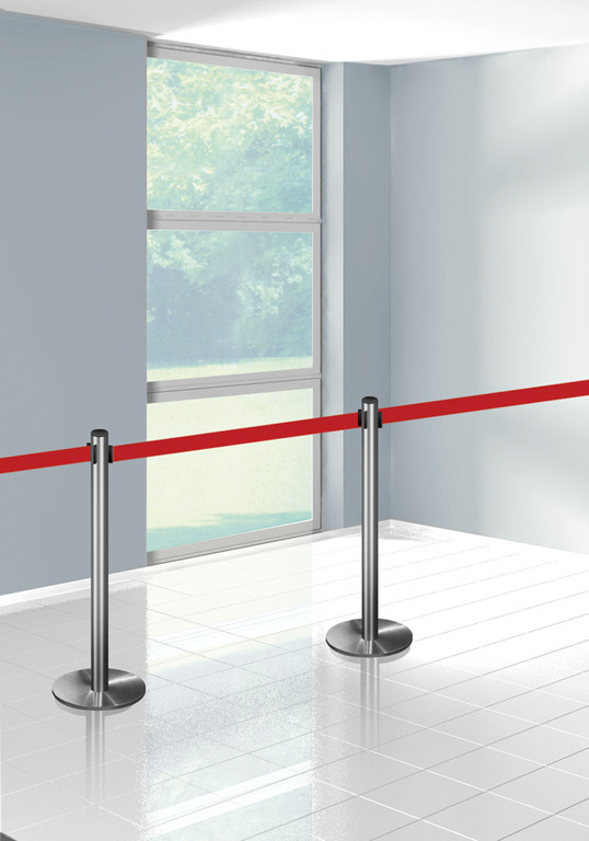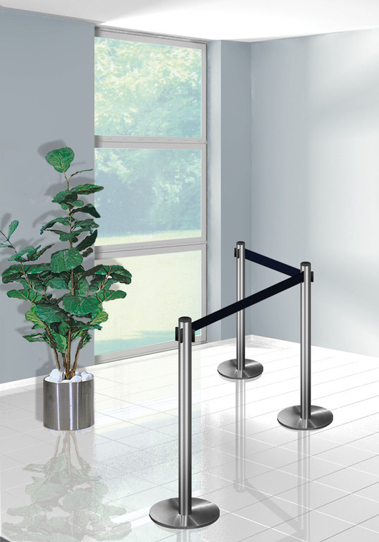 Dieses Leitsystem ist durch seine einfache Handhabung, der Gurt wird einfach in den nächsten Pfosten eingehängt,