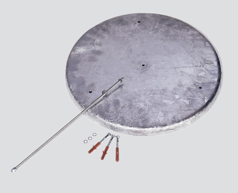 - 2. Bodenronde für den Standascher, feuerverzinkt, ermöglicht eine einfache und diebstahlsichere Bodenmontage der Standascher, Gewicht: 3 kg