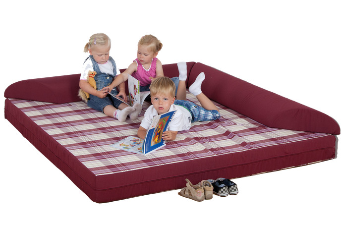 Unsere Kuschelecke ist vielseitig verwendbar. Sie kann wahlweise als Dreieck (Sitzhöhe ca. 30cm) oder aufgeklappt als Quadrat genutzt werden. Da steht einer ausgedehnten Pause, einem Lesestündchen oder einem Mittagsschlaf nichts mehr im Weg.