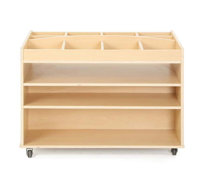Ansprechende Ahorn-Optik / 2 Böden / 12 Ablagefächer an der Oberseite / 4 Rollen mit Feststellern