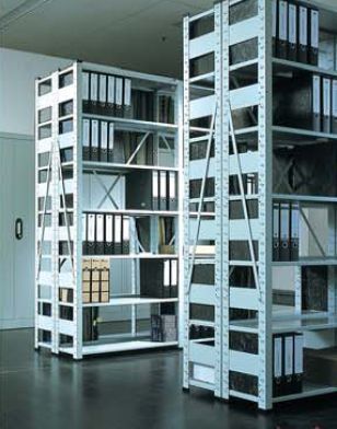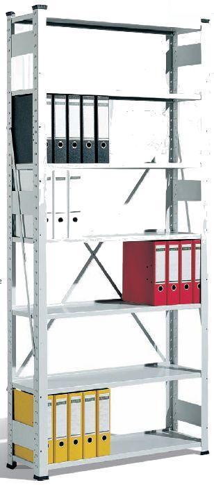 Grundregal, Breite 1000 mm, bestehend aus: 4 Eckpfosten, 7 Fachböden für 6 Ordnerhöhen zzgl. Abdeckboden,