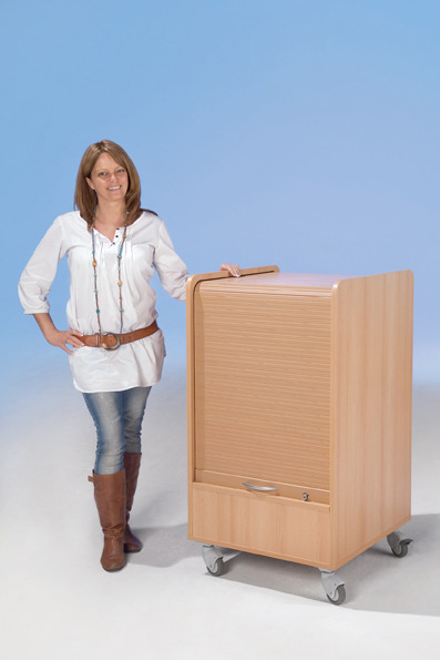 - fahrbar mit 4 Rollen, davon 2 feststellbar