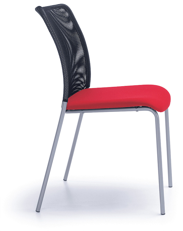 Unser Konferenzstuhl "SOLA" mit 4-Fußgestell, gepolsterter Sitzfläche und Rücken aus atmungsaktivem Netzstoff in Schwarz. Er ist stapelbar, kann in verschiedenen Sitzflächenfarben bestellt werden und ist optional auch mit Armlehne verfügbar.