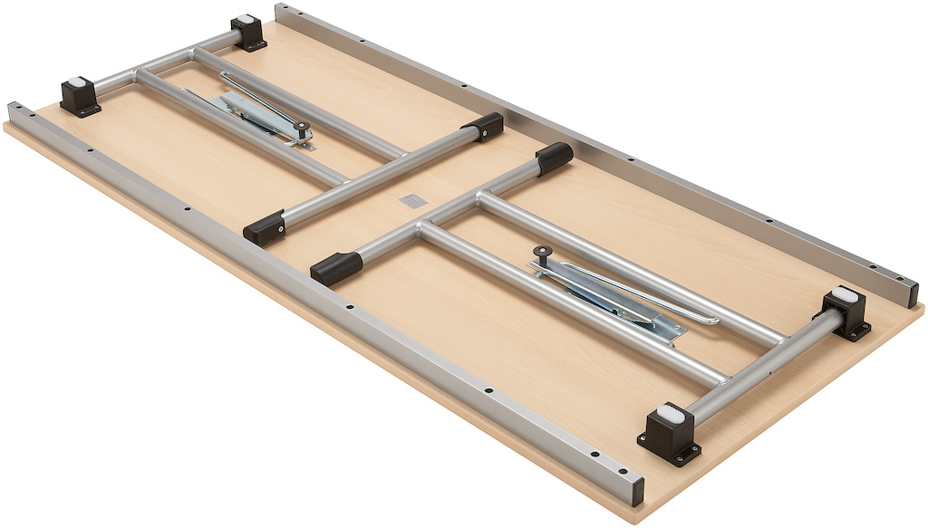 Wo Tische regelmäßig benutzt werden, der Raum aber auch anderweitig genutzt werden soll, ist der Klapptisch Slide die ideale Lösung. Die Seitenteile lassen sich schnell und einfach einklappen. So lassen sich die Tische platzsparend stapeln und bis zum nächsten Einsatz verstauen, beispielsweise auf einem Tisch-Transportwagen Slide für bis zu 10 Klapptische.