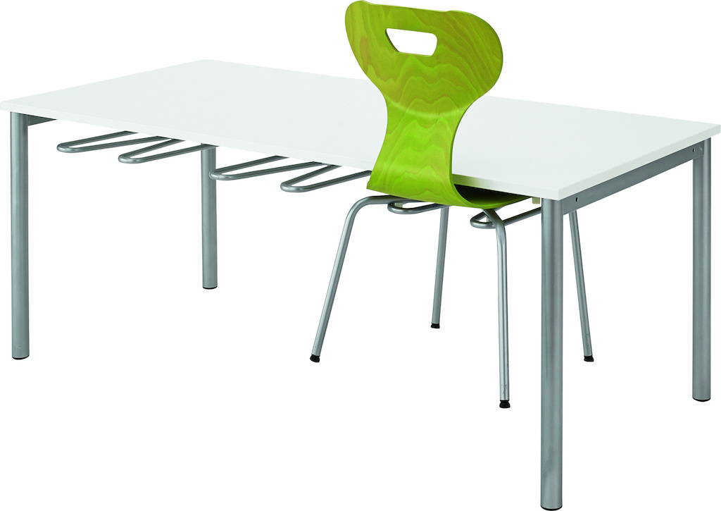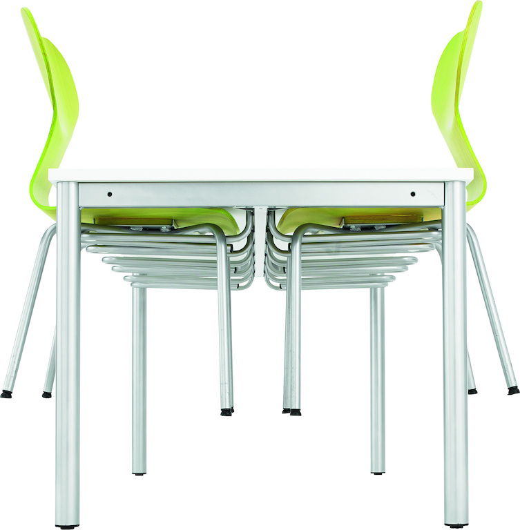 Der Mensatisch modo plus mit innovativer Stuhlaufhängung spart viel Zeit bei der täglichen Reinigung der Mensa oder des Speisesaals.