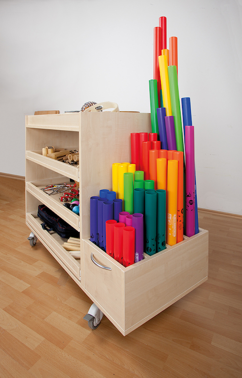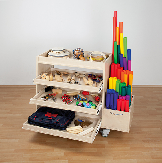 Unser Musikwagen wurde speziell für Schulen entwickelt. Auf dem Wagen finden alle Instrumente Platz, die Sie für spontane Einsätze benötigen. Obere Ablage mit Aufkantung, 3 Schubladen mit umlaufender Aufkantung, Spezialbox für Boom-Whakers, Plexiglas Rückwand für mehr Sicht, fahrbar mit 4 Rollen, 2 davon feststellbar.