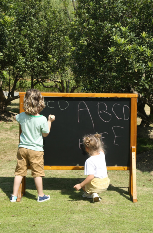beidseitig nutzbare große Tafelfächen für kreatives Malen und erste Schreibversuche