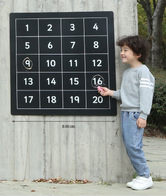 Die Outdoor-Kreidetafel 'Zahlen 1-100' im Einsatz