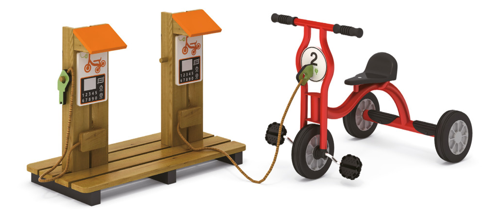 Die E-Tankstelle eignet sich besonders gut für Rollenspiele. Sie verfügt über zwei Ladestationen mit Anzeige sowie je einem Ladestecker, der direkt am Fahrzeug der Linie "Power Trikes" befestigt werden kann. Aber selbstverständlich kann die Tankstelle auch für andere Fahrzeugtypen benutzt werden. Sie ist getestet und sicher nach DIN EN 71 und außerdem TÜV getestet.