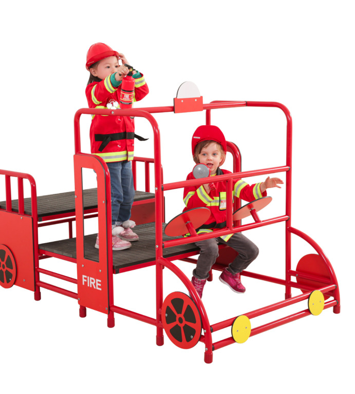 die Feuerwehr regt die Fantasie und Kreativität der Kinder bei Rollenspielen an und lädt gleichzeitig zum Klettern ein