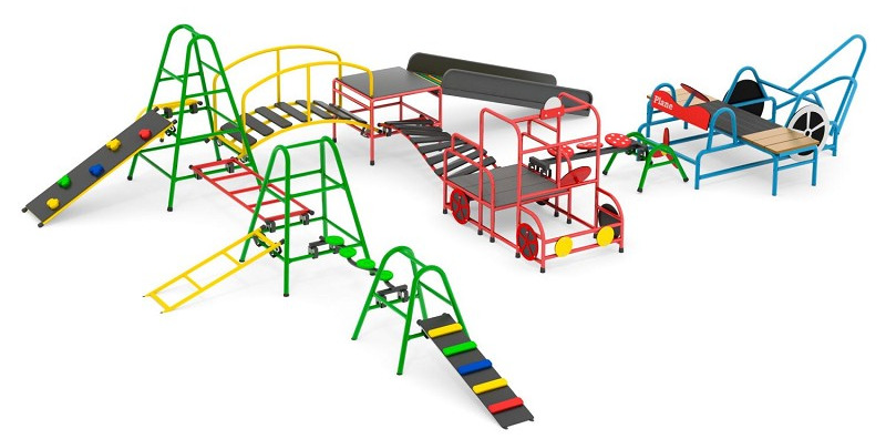 Hier ein Beispiel einer individuell zusammengestellten OXYGYM Spielanlage in Form eines spannenden und abwechslungsreichen Parcours