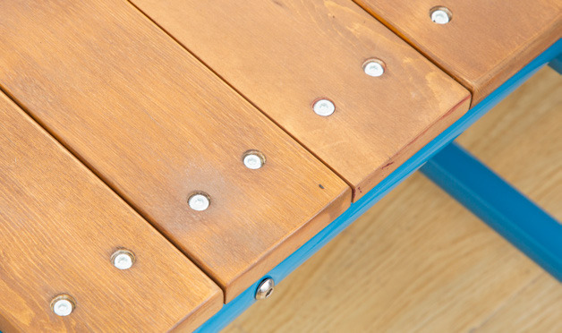 Stahlrahmen, galvanisiert und pulverbeschichtet / WPC /PE / HPL / kesseldruckimprägniertes Kiefernholz mit natürlicher Holzöl-Wachs-Lasur