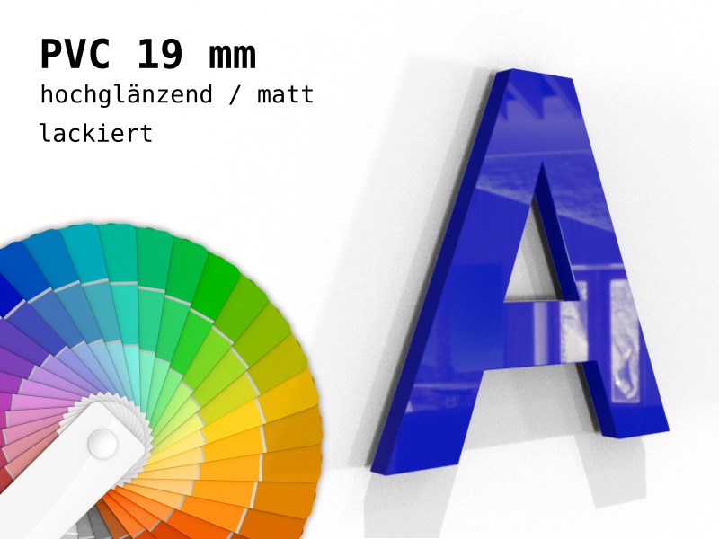 PVC-Buchstaben können wir in allen RAL und Pantone Farbtönen lackieren.