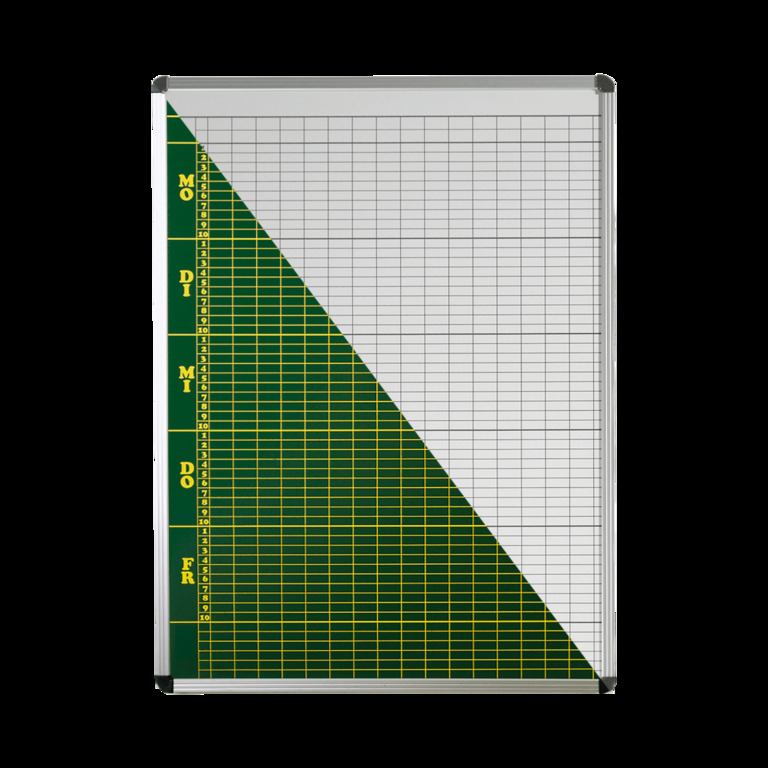 Unsere Stundenplantafel "CMP.." ist speziell auf die Bedürfnisse von Schulen zugeschnitten und ist die perfekte Lösung, alle Unterrichtsstunden übersichtlich zu gestalten.Die Plantafeln sind mit weißer oder grüner Tafeloberfläche lieferbar. Die Whiteboard Oberfläche verfügt über ein eingebranntes Stundenplanraster in schwarz und ist mit trocken abischbaren Stiften beschreibbar, die Fläche ist trocken abwischbar.Die grüne Oberfläche verfügt über ein eingebranntes Stundenplanraster in gelb und ist mit Kreide beschreibbar.Die Stundelplantafeln sind mit einem umlaufenen Aluminiumrahmen versehen.Durch ihre magnethaftende Oberfläche lassen sich die passenden Magnetsätze für Lehrkräfte