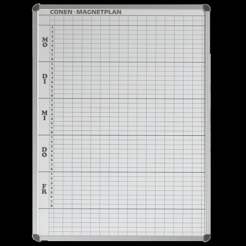 8 Stunden, 40 Klassen, Stahlemaillie weiß, magnethaftend, mit Whiteboardmarkern beschreibbar