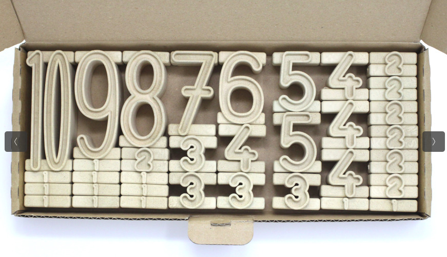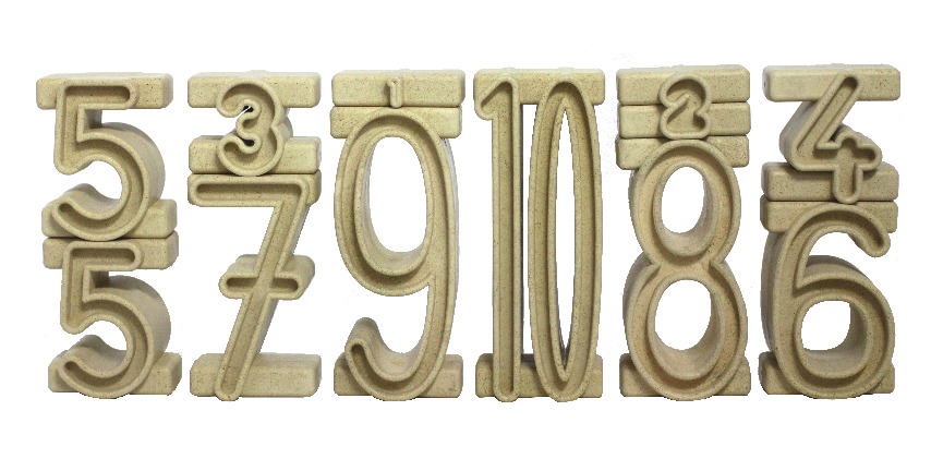 Satz aus 34 Stapelzahlen aus RE-Wood®. 12 x 1, 7 x 2, 4 x 3, 4 x 4, 2 x 5, 1 x 6, 1 x 7, 1 x 8, 1 x 9, 1 x 10 ermöglicht 10 x den Wert 10 mit unterschiedlichen Stapelzahlen zu stapeln. Der Wert der Stapelzahlen entspricht der Höhe in Zentimeter. Alle Zahlen sind 4 cm breit und 3 cm tief. Verpackt im Karton inklusive Kontrolllineal und Anleitung.