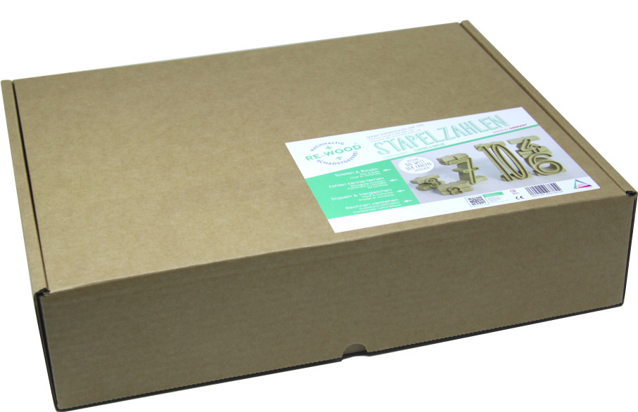 Satz aus 170 Stapelzahlen aus RE-Wood®. 60 x 1, 35 x 2, 20 x 3, 20 x 4, 10 x 5, 5 x 6, 5 x 7, 5 x 8, 5 x 9, 5 x 10 ermöglicht 50 x den Wert 10 mit unterschiedlichen Stapelzahlen zu stapeln. Der Wert der Stapelzahlen entspricht der Höhe in Zentimeter. Alle Zahlen sind 4 cm breit und 3 cm tief. Inklusive 5 Kontrolllinealen und Anleitung. Verpackt im praktischen Baumwollbeutel und Karton mit Anleitung.