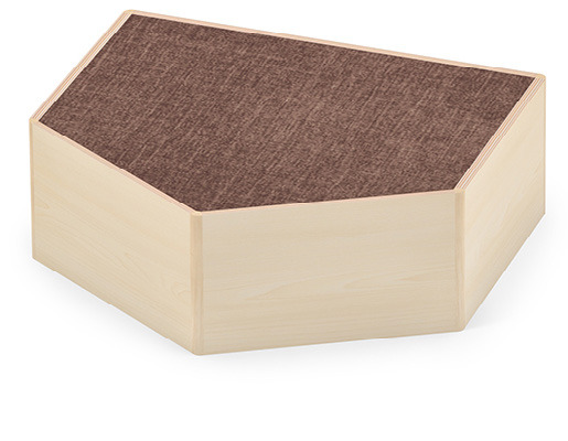 fünfeckiges Podest mit dunkelbraunem Teppich