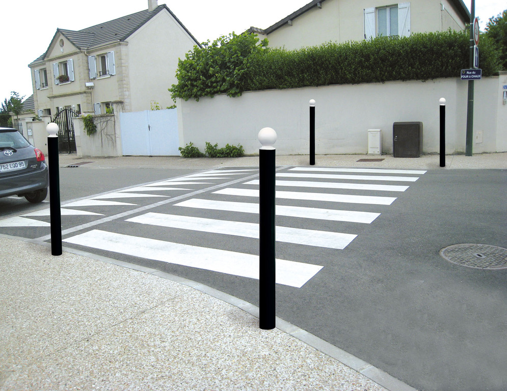 Der Kontrast der Farben und die spezifischen Größen dieser Pfosten wurden entwickelt, um den neuen Gesetzgebungen auf dem Gebiet der Stadtmöbilierung, insbesondere für sehbehinderte Personen gerecht zu werden.