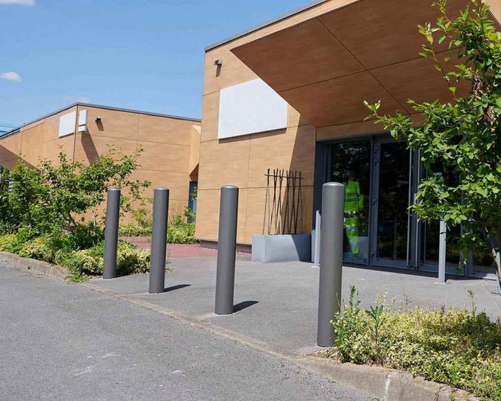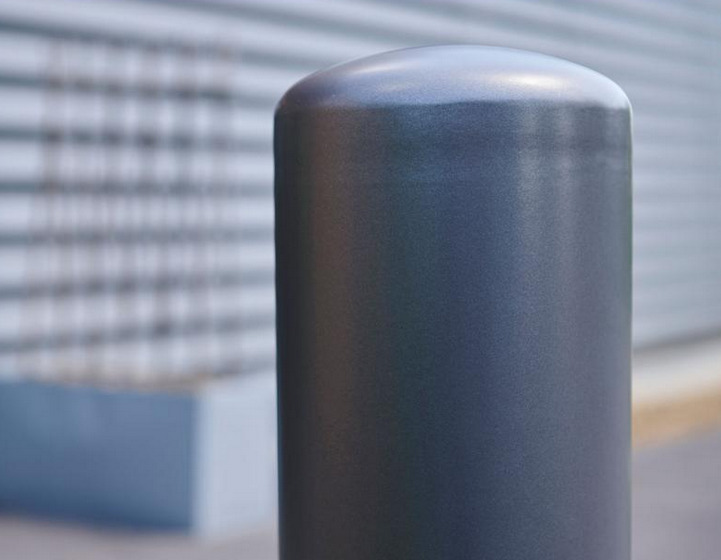Poller zum Schutz von gefährdeten Bereichen (Geschäfte, Bahnhöfe, Fußgängerzugänge...) gegen Angriffe mit „Ramm-Fahrzeugen“. Um die Effizienz zu steigern, kann der Poller bei der Montage zusätzlich mit Beton und Armierung gefüllt werden.