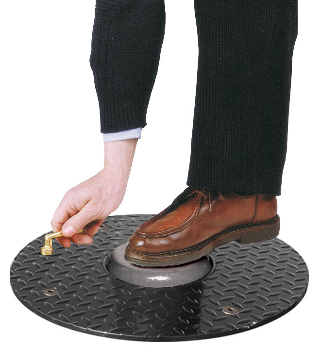 Standardmäßig mit Schloss für 11er-Dreikantschlüssel geliefert. - Abdeckung: Aus Stahl, feuerverzinkt und schwarz lackiert ø 460 mm, Stärke 10 mm. Rutschfeste Oberflächenstruktur.