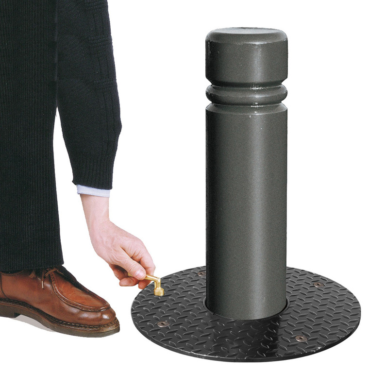 - Gleitlager: Aufnahme des Pollers mit zentraler und seitlicher Führung. Betätigung durch wasserdichte Gasdruckfeder, senkrechtes Gleiten im Kasten.