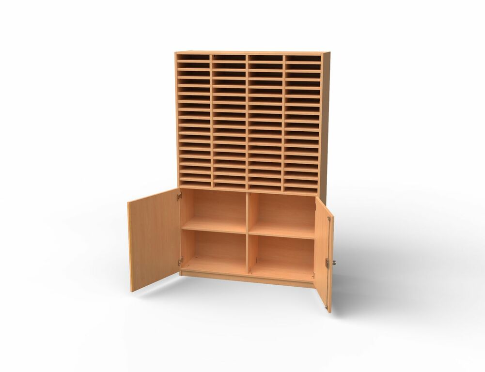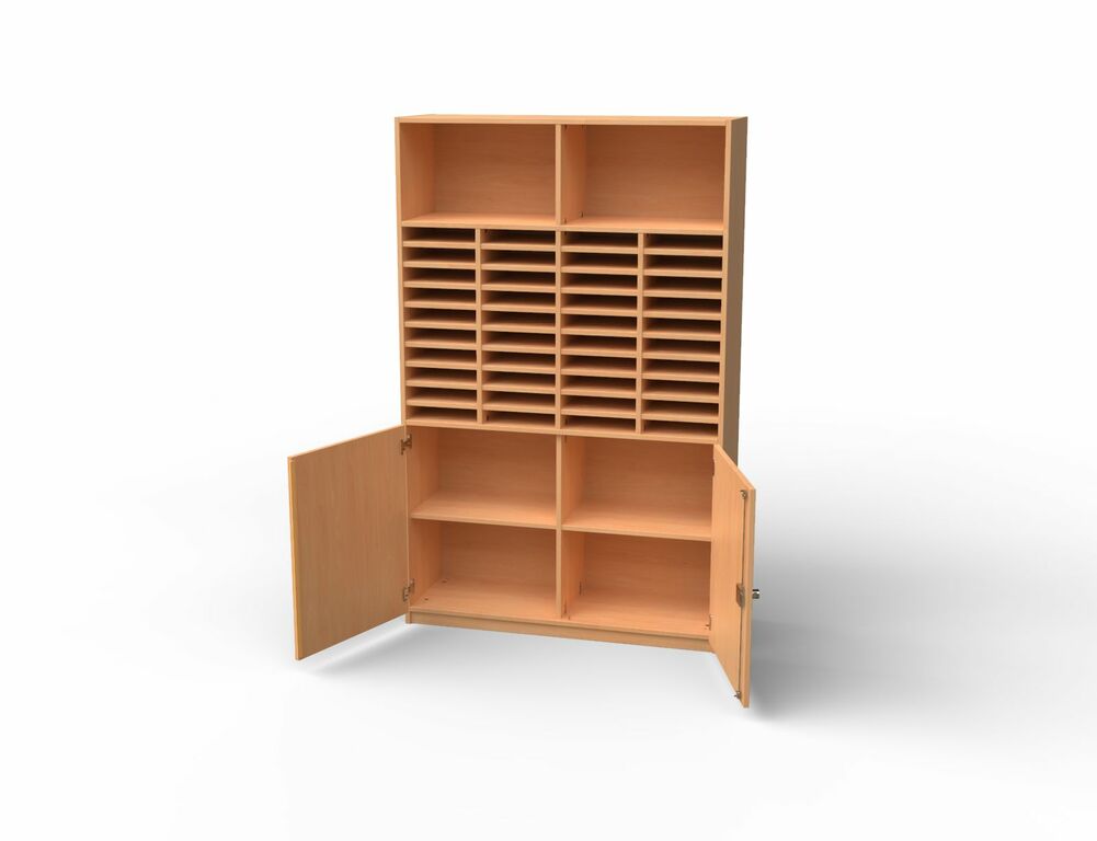 - Oben: offen, Mittelwand, 68 offene Postfächer.
