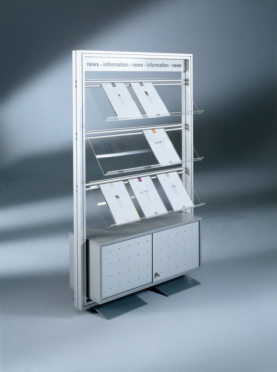 aus Aluminium mit Schloss, Acrylablageboards, Information + Hinweisleiste NEWS.